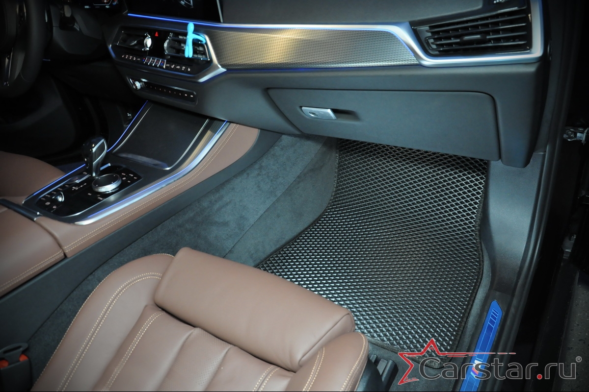 Автомобильные коврики EVA BMW X5 IV G05 (2018->) – это долговечные, удобные и универсальные аксессуары, которые помогут надежно защитить салон и багажник вашего авто от пыли, грязи и влаги в любое время года.