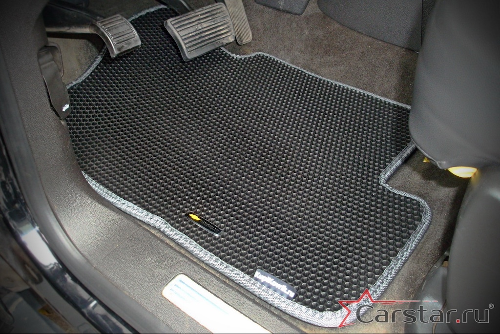 Толщина ковриков EVA составляет 10-12 мм. Глубина ячеек 7-8 мм. Такая толщина ковриков позволяет им служить довольно долго, не протираясь до 3 лет. А благодаря такой глубине ячеек коврик EVA площадью 1 кв.м. способен захватить около 3,5 л жидкости, сохраняя в чистоте вашу обувь и обивку салона.