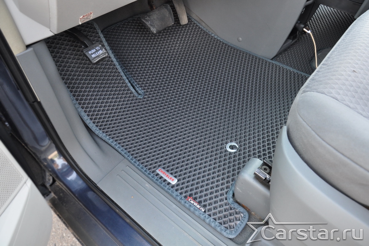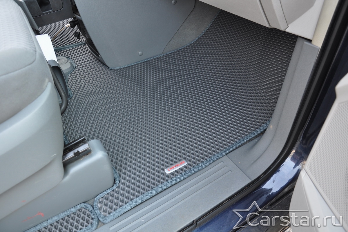 Автомобильные коврики EVA Chrysler Grand Voyager V (2008->) 2 ряд: кресла 1+1 не убираются в пол – это долговечные, удобные и универсальные аксессуары, которые помогут надежно защитить салон и багажник вашего авто от пыли, грязи и влаги в любое время года.