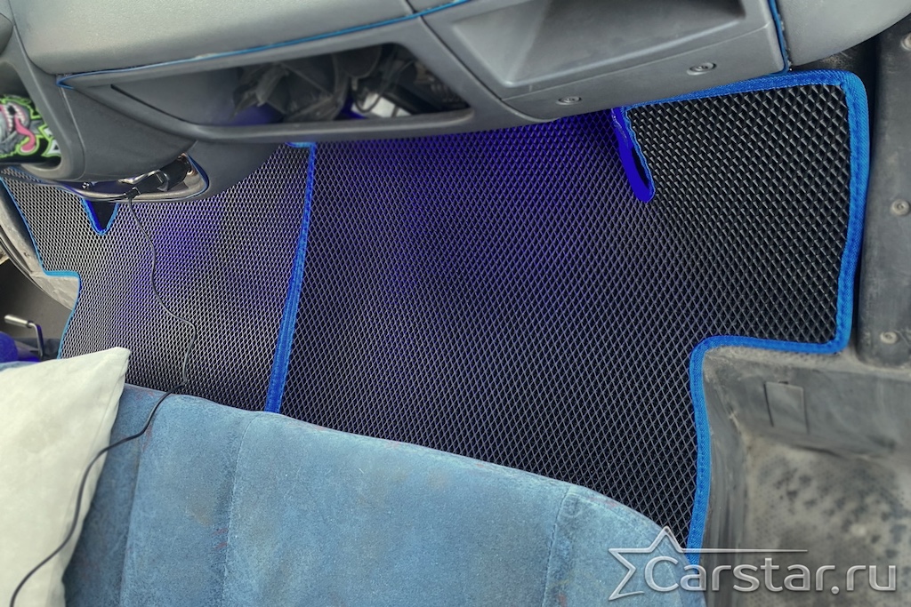 Толщина ковриков EVA составляет 10-12 мм. Глубина ячеек 7-8 мм. Такая толщина ковриков позволяет им служить довольно долго, не протираясь до 3 лет. А благодаря такой глубине ячеек коврик EVA площадью 1 кв.м. способен захватить около 3,5 л жидкости, сохраняя в чистоте вашу обувь и обивку салона.