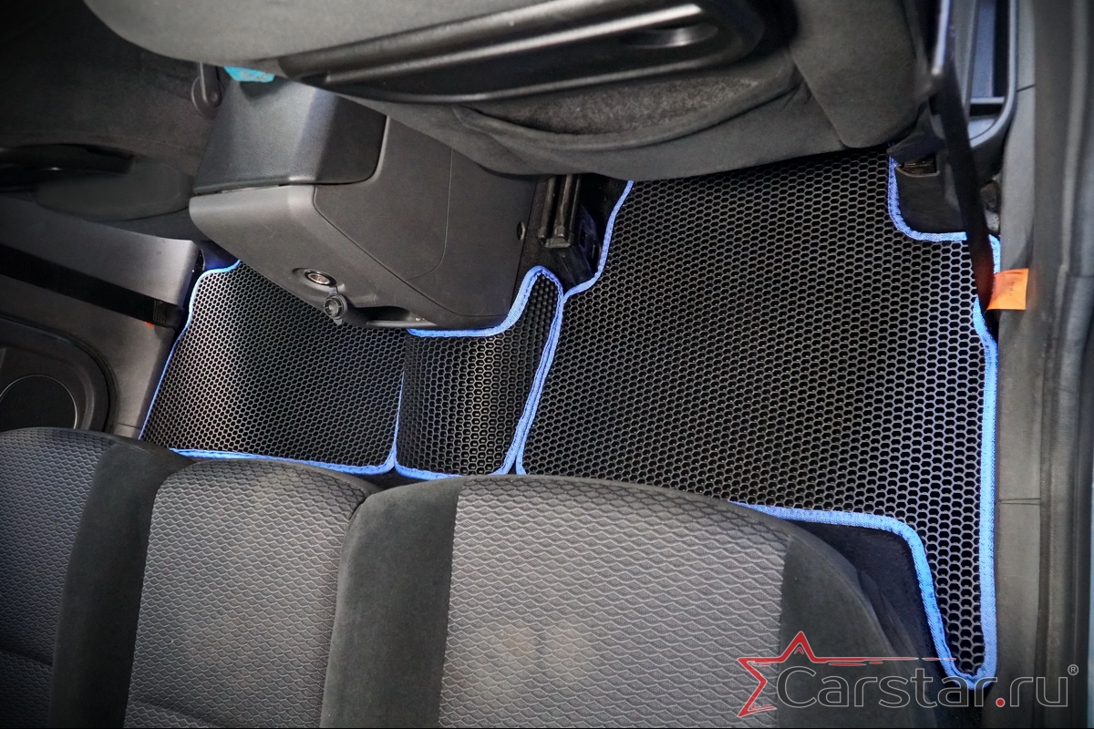Толщина ковриков EVA составляет 10-12 мм. Глубина ячеек 7-8 мм. Такая толщина ковриков позволяет им служить довольно долго, не протираясь до 3 лет. А благодаря такой глубине ячеек коврик EVA площадью 1 кв.м. способен захватить около 3,5 л жидкости, сохраняя в чистоте вашу обувь и обивку салона.