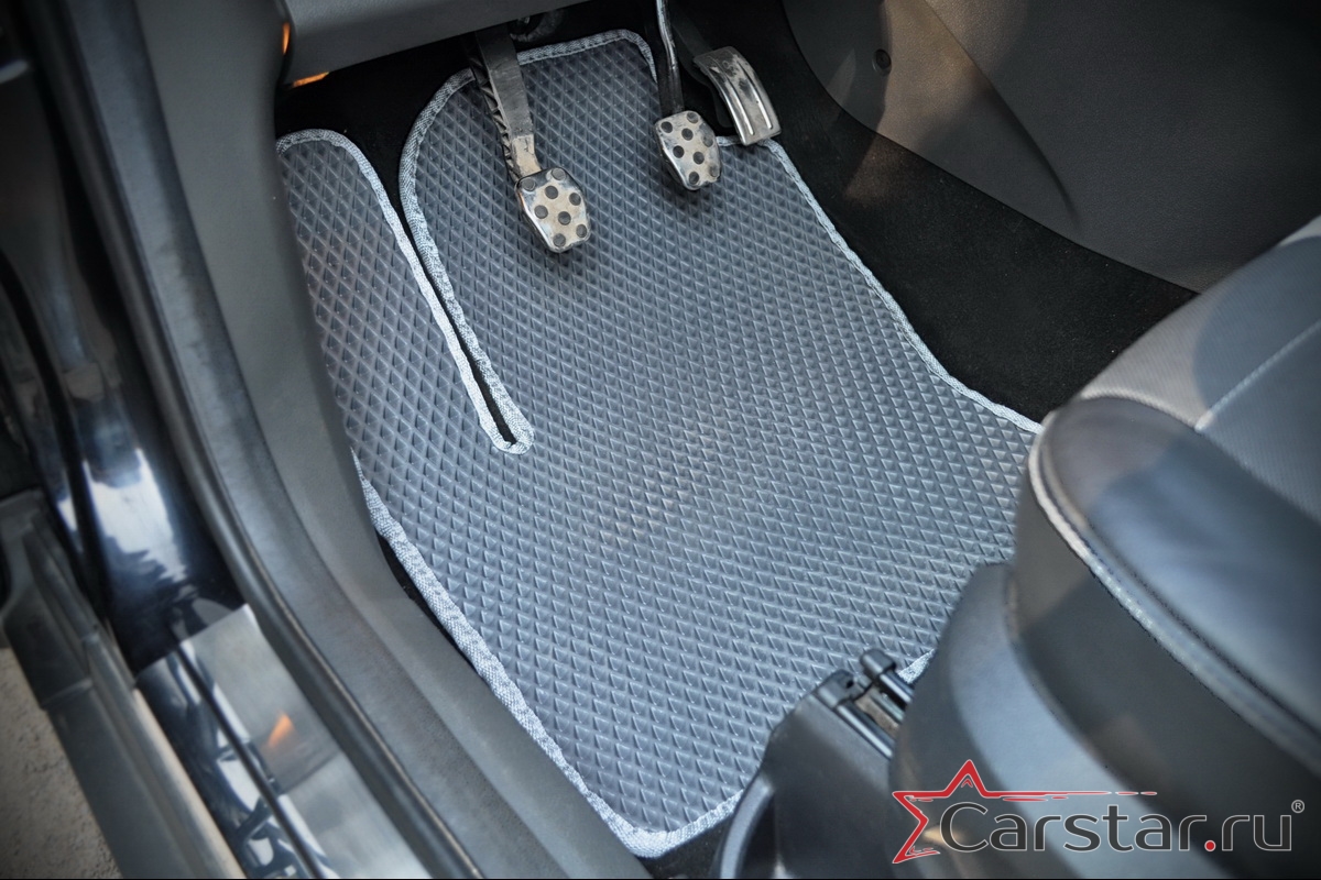 Автомобильные коврики EVA прекрасно подходят для всех существующих марок и моделей авто, здесь вы сможете заказать оптимальный аксессуар любого возможного цвета. По размерам они больше, чем стандартные резиновые коврики, поэтому покрывают максимальную площадь пола в салоне. А двойная система креплений (клипсы и липучки) позволяет надежно зафиксировать коврики в нужном месте.