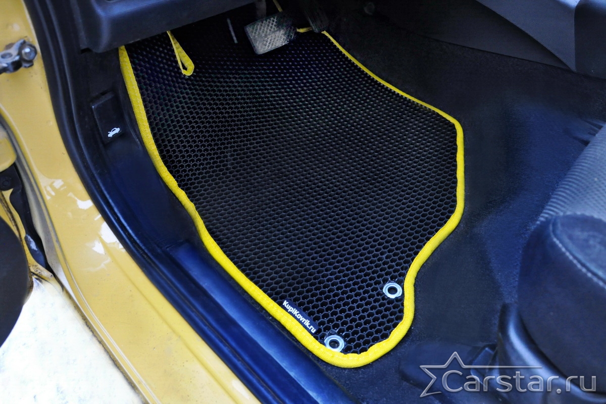 Толщина ковриков EVA составляет 10-12 мм. Глубина ячеек 7-8 мм. Такая толщина ковриков позволяет им служить довольно долго, не протираясь до 3 лет. А благодаря такой глубине ячеек коврик EVA площадью 1 кв.м. способен захватить около 3,5 л жидкости, сохраняя в чистоте вашу обувь и обивку салона.