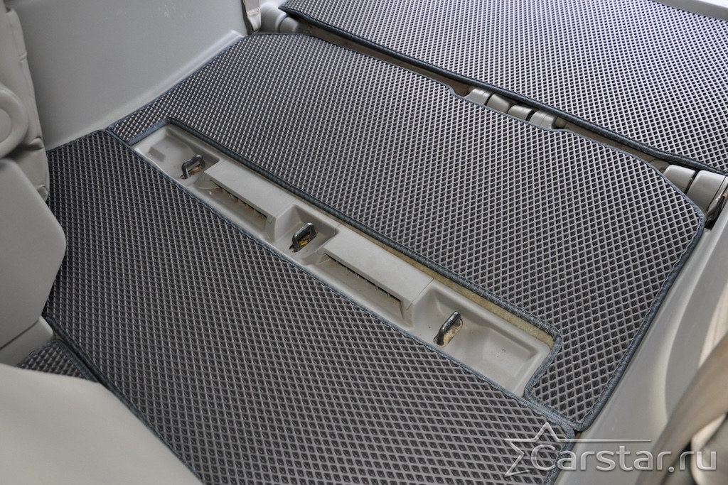 Толщина ковриков EVA составляет 10-12 мм. Глубина ячеек 7-8 мм. Такая толщина ковриков позволяет им служить довольно долго, не протираясь до 3 лет. А благодаря такой глубине ячеек коврик EVA площадью 1 кв.м. способен захватить около 3,5 л жидкости, сохраняя в чистоте вашу обувь и обивку салона.
