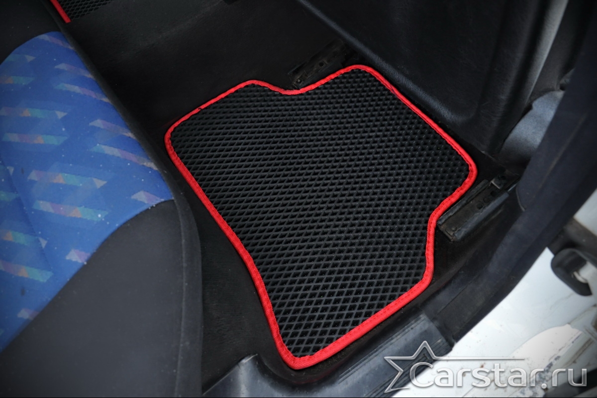 Толщина ковриков EVA составляет 10-12 мм. Глубина ячеек 7-8 мм. Такая толщина ковриков позволяет им служить довольно долго, не протираясь до 3 лет. А благодаря такой глубине ячеек коврик EVA площадью 1 кв.м. способен захватить около 3,5 л жидкости, сохраняя в чистоте вашу обувь и обивку салона.