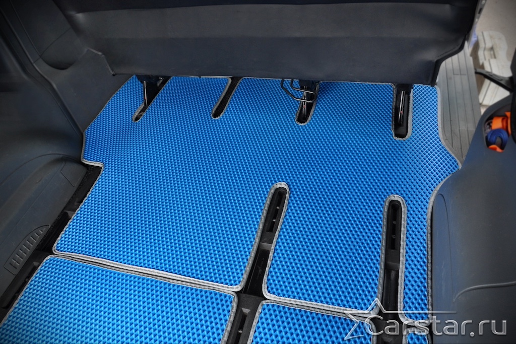 Толщина ковриков EVA составляет 10-12 мм. Глубина ячеек 7-8 мм. Такая толщина ковриков позволяет им служить довольно долго, не протираясь до 3 лет. А благодаря такой глубине ячеек коврик EVA площадью 1 кв.м. способен захватить около 3,5 л жидкости, сохраняя в чистоте вашу обувь и обивку салона.