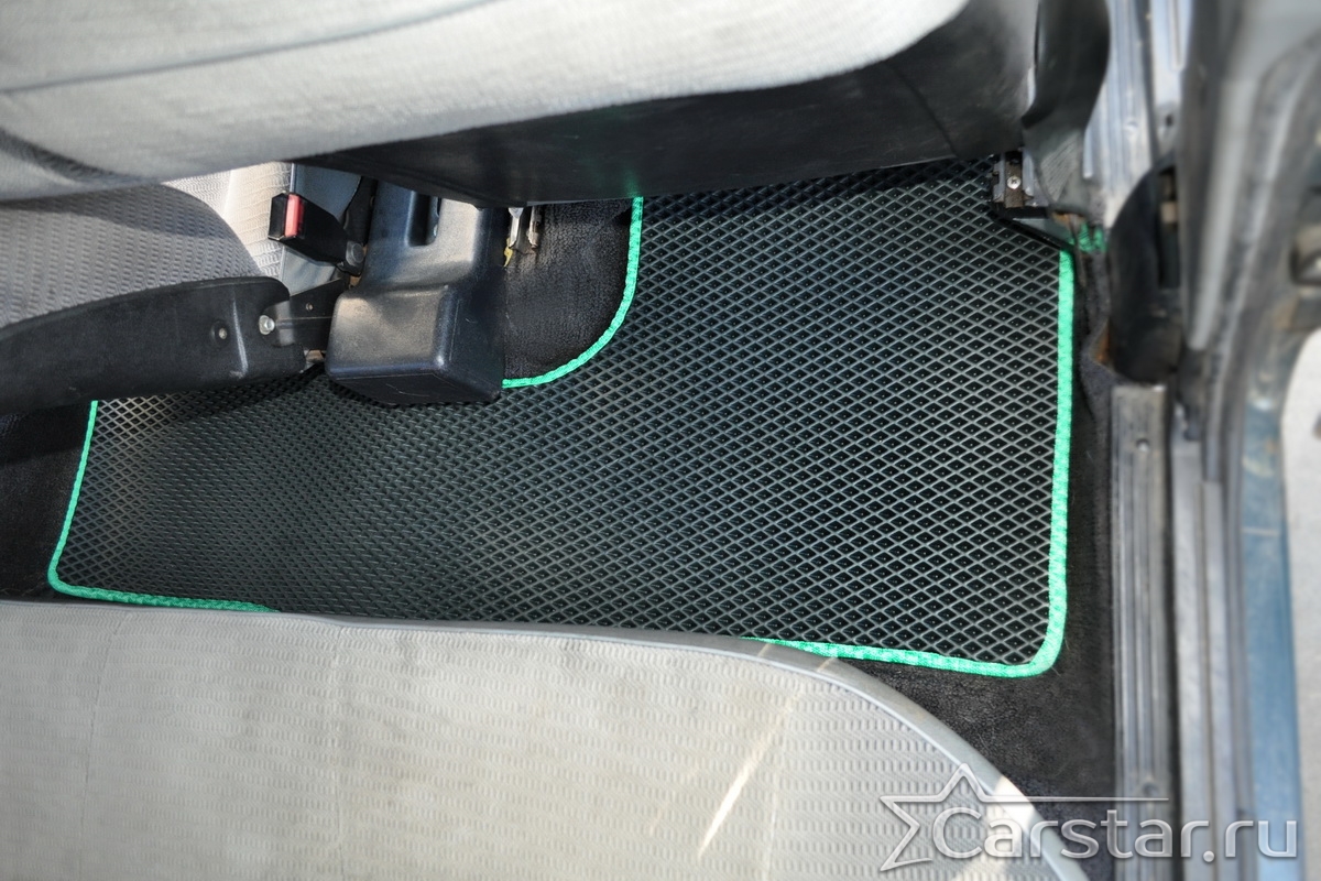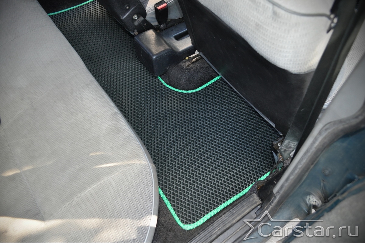 Толщина ковриков EVA составляет 10-12 мм. Глубина ячеек 7-8 мм. Такая толщина ковриков позволяет им служить довольно долго, не протираясь до 3 лет. А благодаря такой глубине ячеек коврик EVA площадью 1 кв.м. способен захватить около 3,5 л жидкости, сохраняя в чистоте вашу обувь и обивку салона.