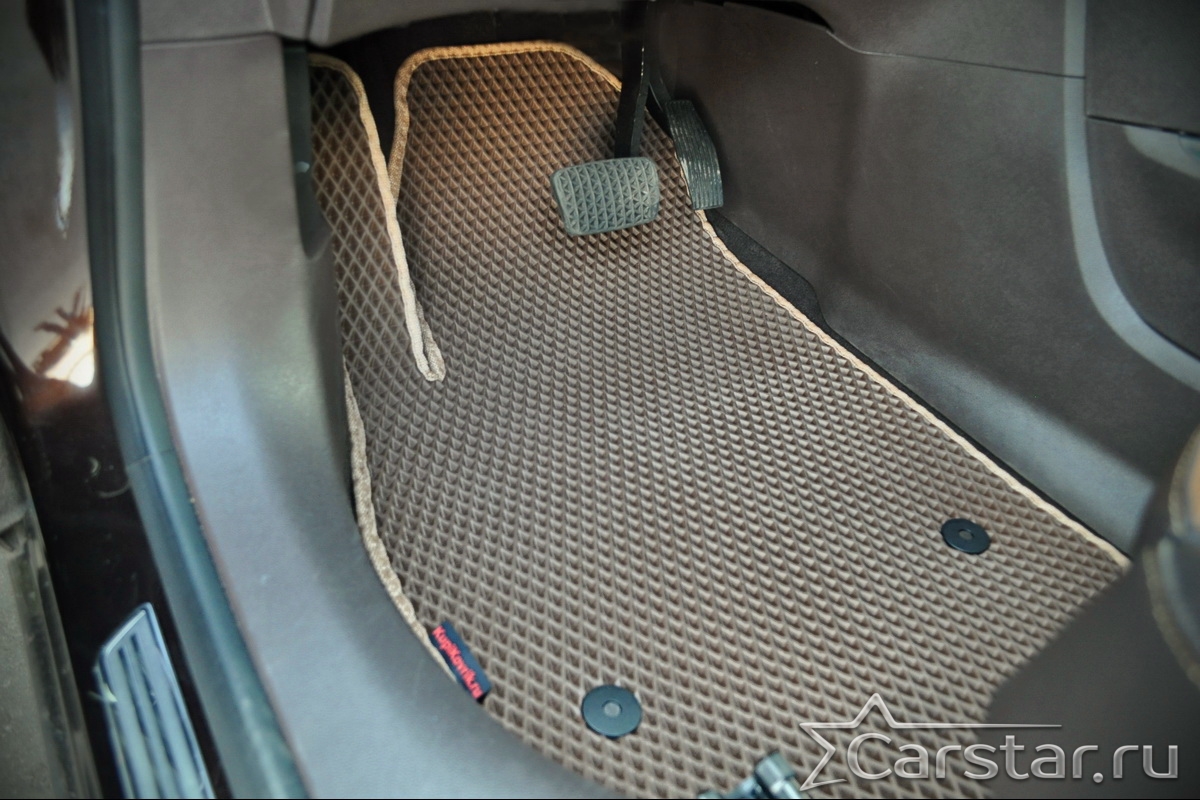 Автомобильные коврики EVA прекрасно подходят для всех существующих марок и моделей авто, здесь вы сможете заказать оптимальный аксессуар любого возможного цвета. По размерам они больше, чем стандартные резиновые коврики, поэтому покрывают максимальную площадь пола в салоне. А двойная система креплений (клипсы и липучки) позволяет надежно зафиксировать коврики в нужном месте.
