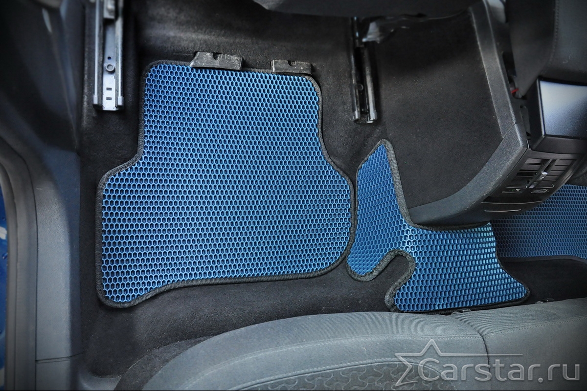 Толщина ковриков EVA составляет 10-12 мм. Глубина ячеек 7-8 мм. Такая толщина ковриков позволяет им служить довольно долго, не протираясь до 3 лет. А благодаря такой глубине ячеек коврик EVA площадью 1 кв.м. способен захватить около 3,5 л жидкости, сохраняя в чистоте вашу обувь и обивку салона.