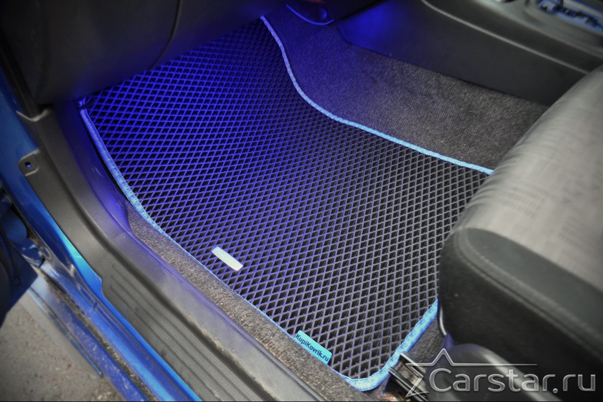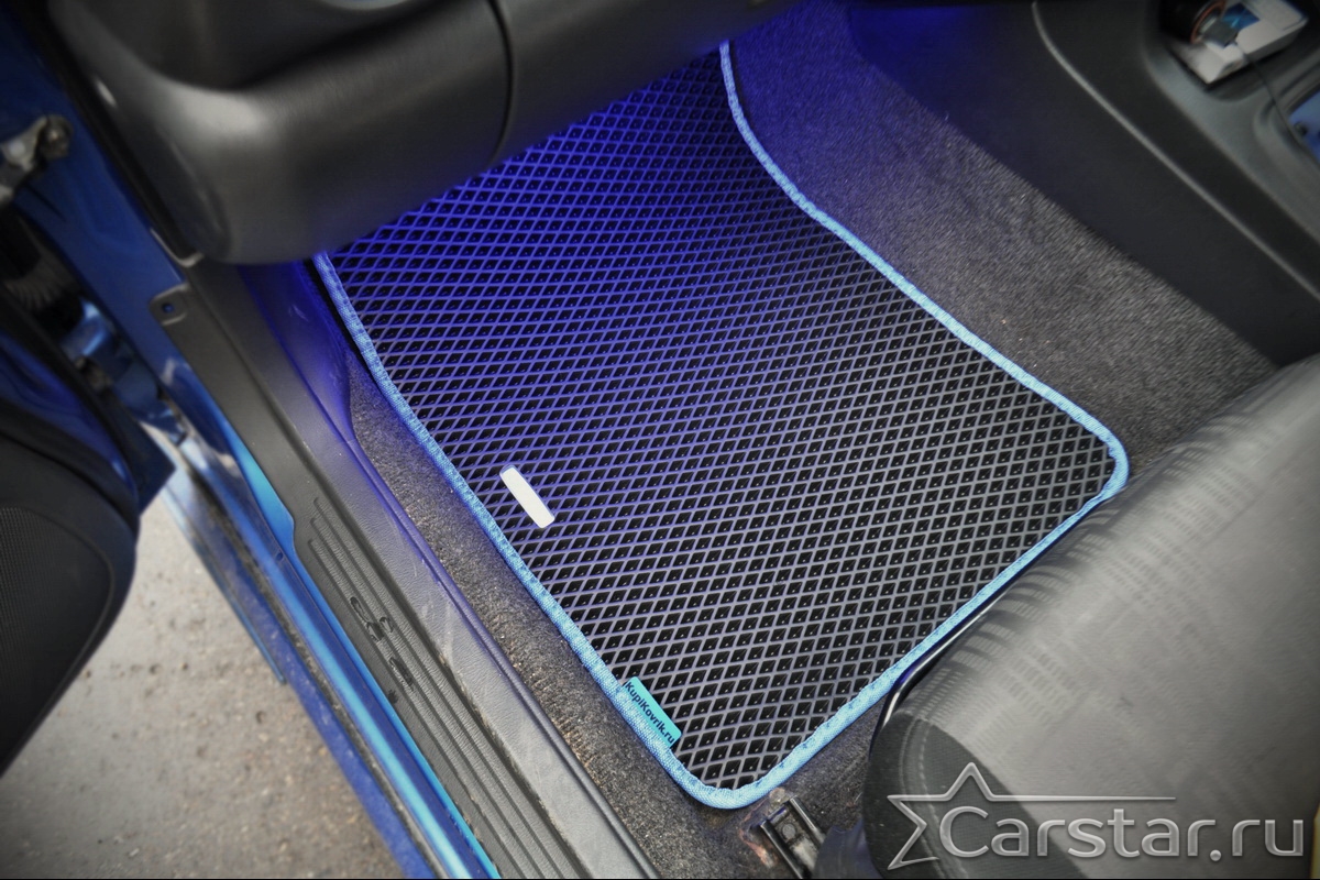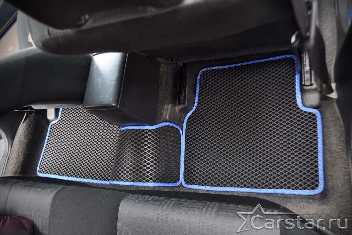 Толщина ковриков EVA составляет 10-12 мм. Глубина ячеек 7-8 мм. Такая толщина ковриков позволяет им служить довольно долго, не протираясь до 3 лет. А благодаря такой глубине ячеек коврик EVA площадью 1 кв.м. способен захватить около 3,5 л жидкости, сохраняя в чистоте вашу обувь и обивку салона.