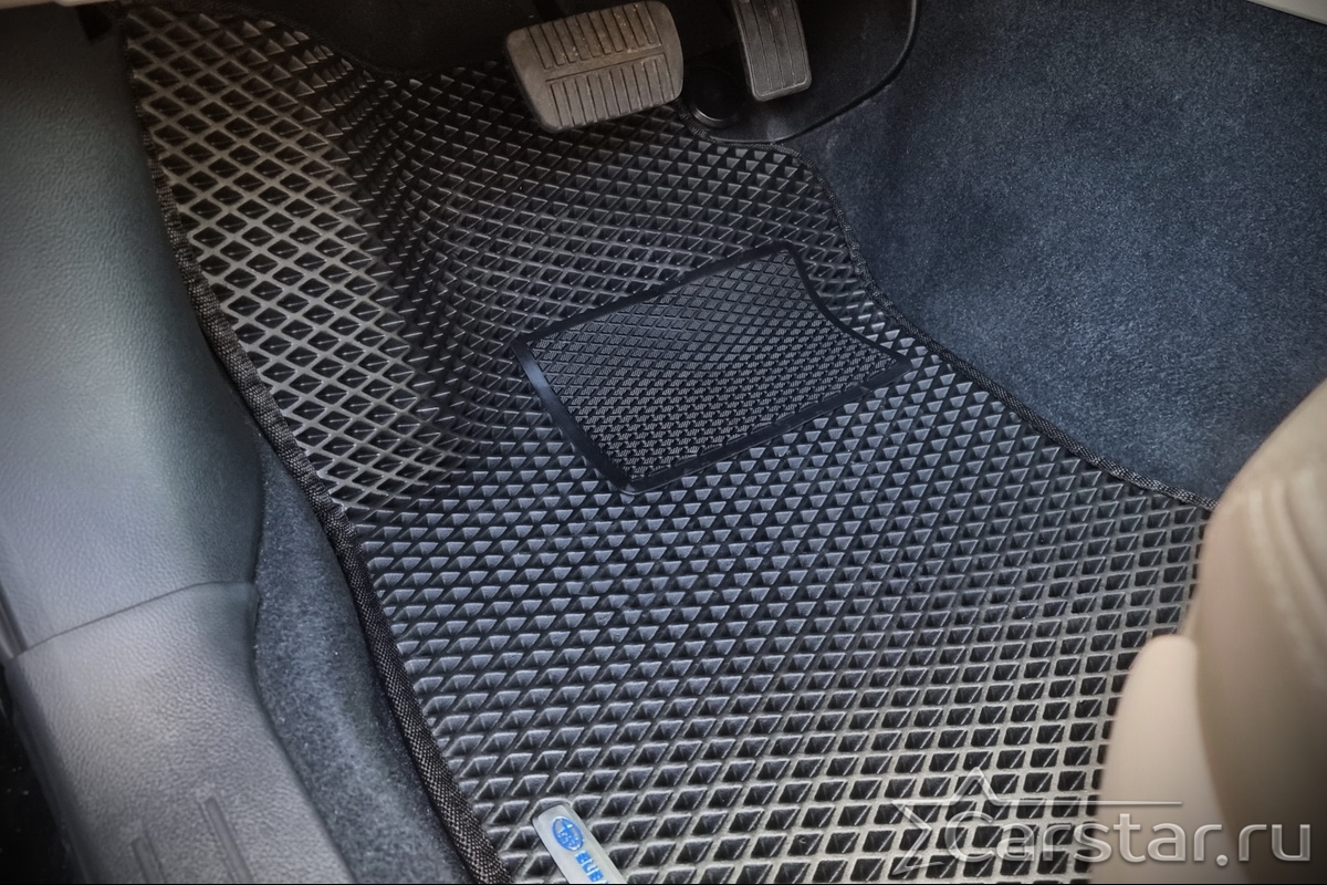 Толщина ковриков EVA составляет 10-12 мм. Глубина ячеек 7-8 мм. Такая толщина ковриков позволяет им служить довольно долго, не протираясь до 3 лет. А благодаря такой глубине ячеек коврик EVA площадью 1 кв.м. способен захватить около 3,5 л жидкости, сохраняя в чистоте вашу обувь и обивку салона.