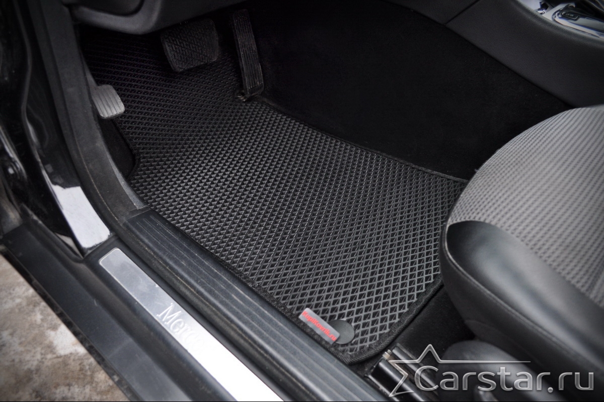 Текстильные коврики надёжно крепятся с помощью оригинальных систем фиксации. Обратная сторона имеет противоскользящее покрытие, что обеспечивает защиту от смещений и безопасность. Максимальное удобство достигается точными лекалами.